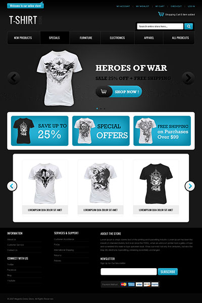 Сегодня в первые на нашем проекте интернет-магазин сделанный на html. Довольно интересный магазин по продаже футболок. Ранее мы уже выкладывали интернет-магазин по продаже футбол, но он был сделан на cms, а наш сегодняшний герой сделан только на html. Шаблон выполнен в темных тонах, что позволяет сосредоточить внимание посетителя именно на товаре. Если Вы хотите добиться больших результатов, то используйте наши бесплатные шаблоны сайтов. Профессионалы команды Psdsite помогут Вам справиться с этой задачей, предлагая современное решение. Хороший чистый код этого бесплатного HTML5 шаблона, с тщательно подобранной цветовой палитрой обязательно поможет Вам. Стильный и продуманный макет этого бесплатного шаблона сайта так же присутствует в комплекте он пригодиться Вам для демонстрации дизайна в онлайн режиме.