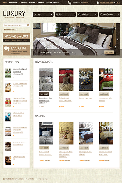 Это готовое решение для Вашего интернет-магазина. Наш бесплатный шаблон готового, интернет-магазина прекрасно стилизован, удобен и профессионально сделан. В этом бесплатном osCommerce шаблоне есть все, что Вам нужно, чтобы Вы смогли начать свой бизнес и продавать товары в интернете. Он был подготовлен командой профессиональных дизайнеров под многие разноплановые бизнес-потребности, а это в свою очередь означает, что наш бесплатный шаблон сайта сможет стать прочной основой для Вашего успешного интернет-магазина. Читать далее >>